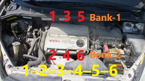 2004-2010 Toyota 3.3L V6 (3MZ-FE) Engine Bank-1 and Bank-2 Location